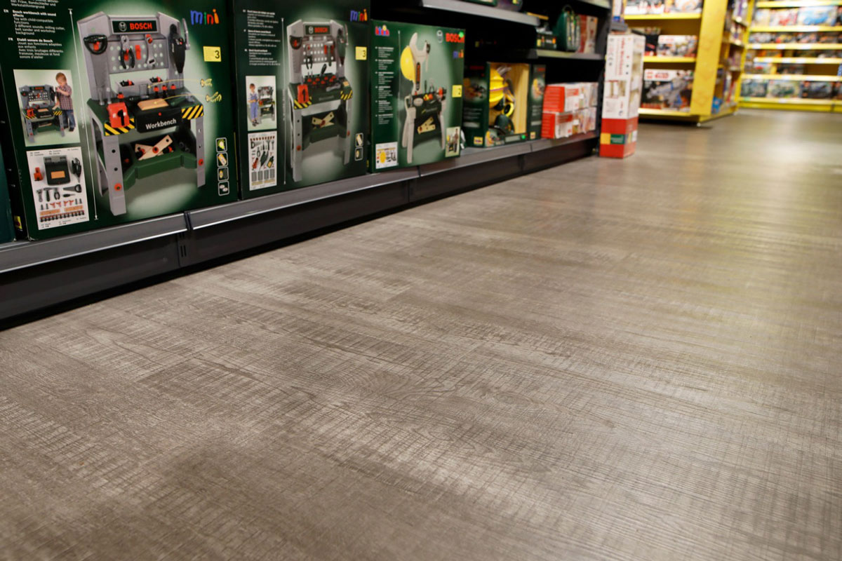 Die Verkaufsfläche von Toys World in Gütersloh haben wir mit über 1.000qm Designbelag ausgestattet. Das Besondere war die Verlegeweise ohne Vollverklebung als „Lose Lay“. Das war besonders schnell, ist pflegeleicht und für Ausbesserungen sehr vorteilhaft.